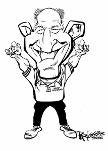 This is Cash Stone, longtime and former wrestling coach of Mead HS in Spokane, WA. He also played the ref in the wrestling movie Visionquest. This caricature was for sweatshirts commemorating his coaching career at Mead HS. Cash is one of those coaches who every parent hopes their student athletes have an opportunity to wrestle for.