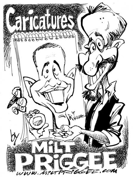 This is a promo piece for myself that I provide to clients who want to advertise my drawing caricatures appearance at their event. The self-caricature and caricature of the President Obama is art used to illustrate, not commentary to challenge readers beliefs to provoke thought.